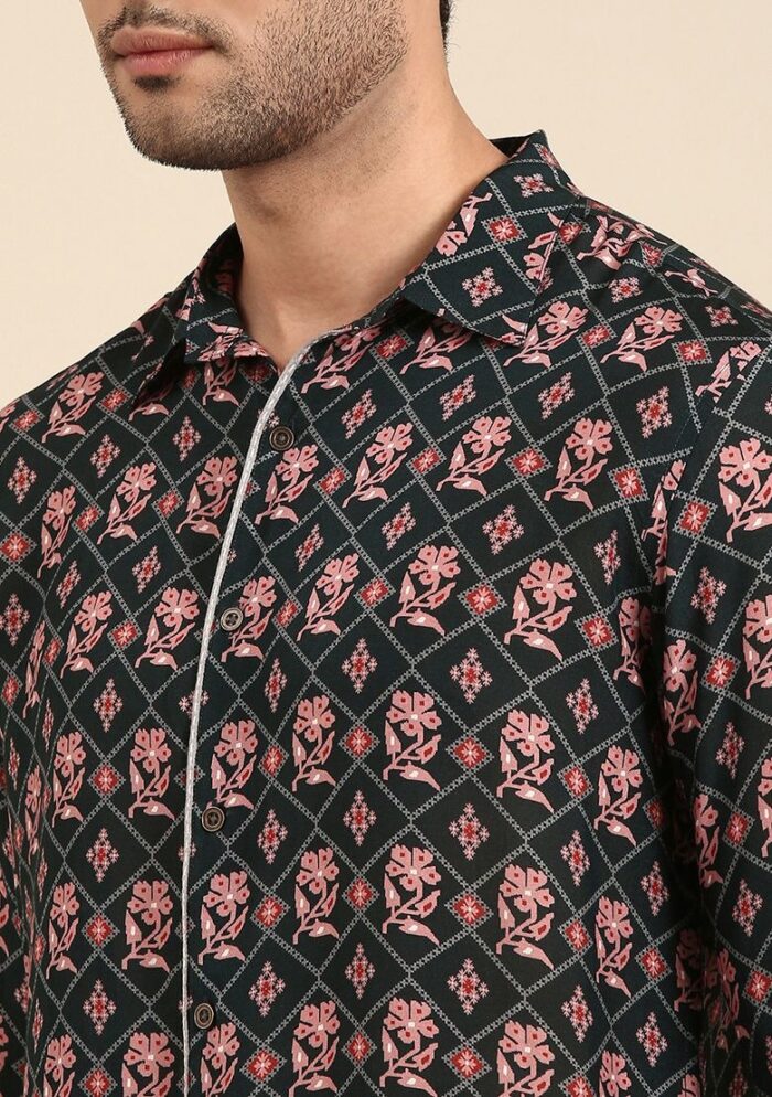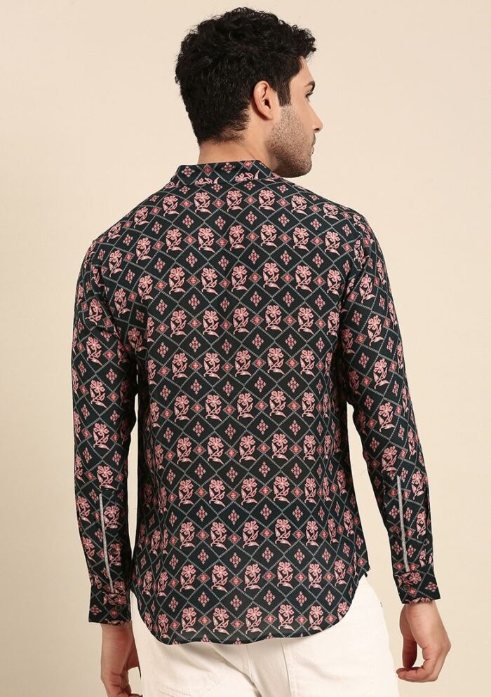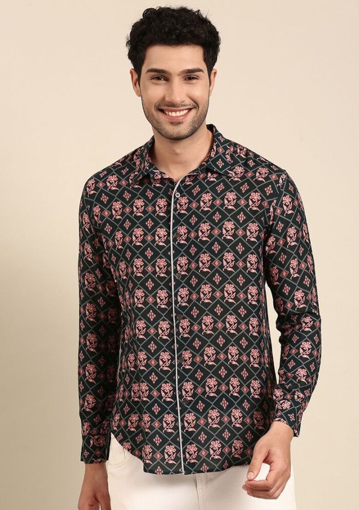 Dark Blue Printed Muslin Shirt For Men – MSH00064