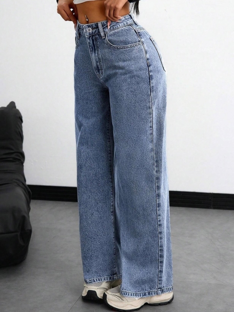 Fashion Women Original High-Rise Stretchable Wide Leg Jeans