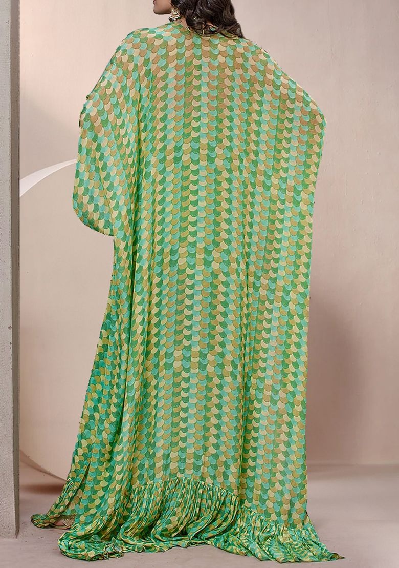Green Jacket Set With Hand Embroidered Blouse And Palazzo – DFS00200