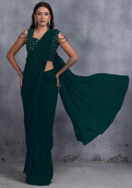 Sequin Thread Embroidered Net Saree Set