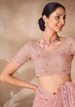 Peach Sequin Thread Embroidered Net Saree Set – XSR23402