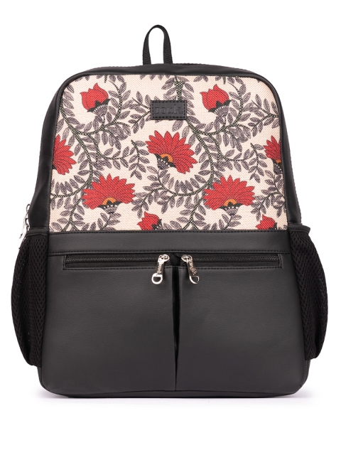 Women Floral Printed Vegan Leather Backpack With Compression Straps-Up to 16 inch